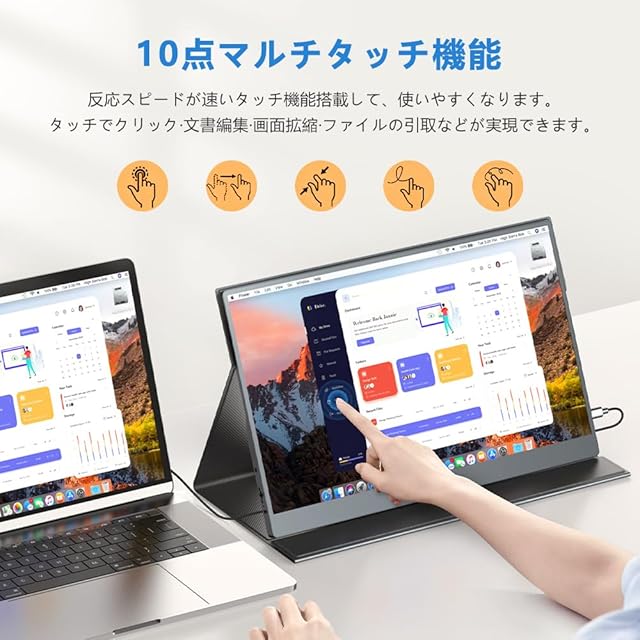 ✅【非光沢タッチパネル|反射を防ぎ、目に優しい快適設計】 一般的なタッチモニターは光沢(グレア)パネルを採用しており、光の映り込みが気になりがちです。本製品は低反射の非光沢IPS液晶を採用し、反射を最小限に抑えて長時間使用でも目の疲れを軽減。テレワーク、動画視聴、学習、電子書籍の閲覧などにも最適です。さらに高精度な10点マルチタッチ対応で、スライドへの手書きやドキュメント編集、ゲーム操作もスムーズに。スマートフォン接続にも対応し、モニター側からのタッチ操作も可能(※ご注意:①USB3.1非対応スマホはタッチ非対応 ②Macbook/iphone/ipadはタッチ非対応)。