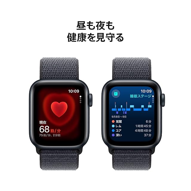 [アップル] Watch SE (第 2 世代) [GPS + Cellular (40mm) ケース用] アルミニウムケースとミッドナイト スポーツループを組み合わせたスマートウォッチ。フィットネストラッカーと睡眠ト ラッカー、衝突事故検出、心拍数のモニタリング、Retina ディスプレイ、耐水性能
