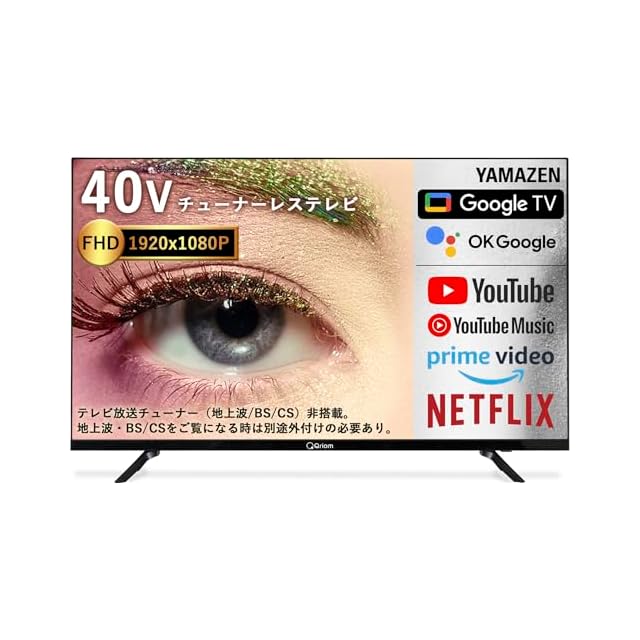 山善 テレビ チューナーレス 液晶 40インチ ネット動画対応 地上波受信なし フルハイビジョン QRK-40TL2K