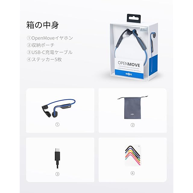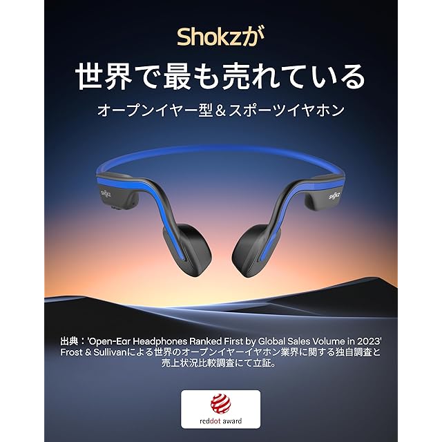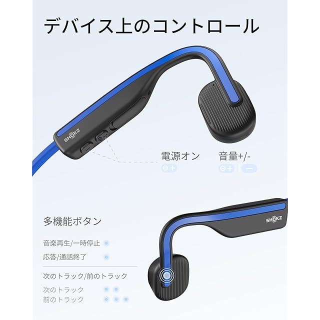 Bluetooth 5.1 SHOKZ OpenMove 骨伝導イヤホン 公式ストア正規品 ワイヤレスイヤホン Zoomなどリモート会議 テレワーク 在宅勤務 6時間使用可能 環境音聞き取り 2年 ブルー