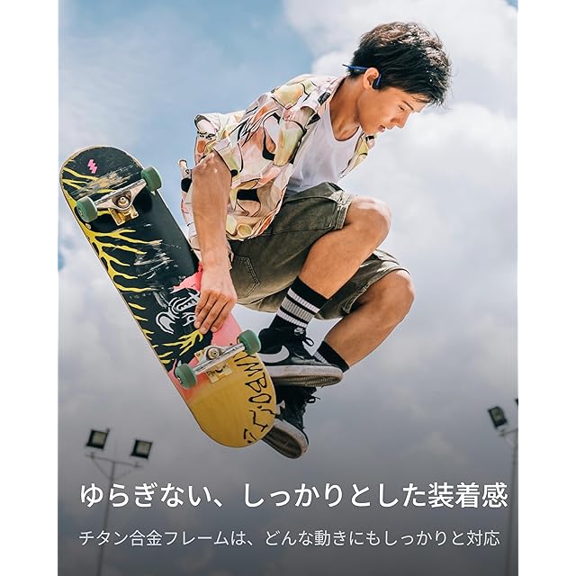 第7代骨伝導テクノロジー:防水規格が一層向上し、音漏れが著しく低減しています。わずか29gの軽量デザインで、快適な使用感としっかりとしたフィット感を体験できます。耳を開けたまま、周囲の状況に気を配りながら、ランニングやワークアウトを安全かつ心地よく楽しめます。