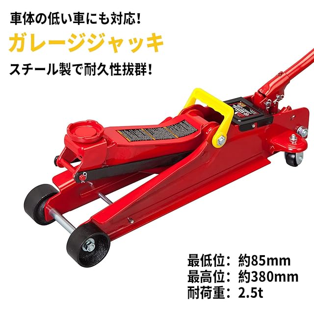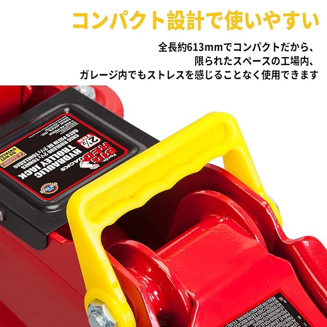 【商品内容】:スチールジャッキ【カラー】:レッド【能力】:2.5t【本体サイズ】:L620×W260×H145mm【重さ】:12.9kg