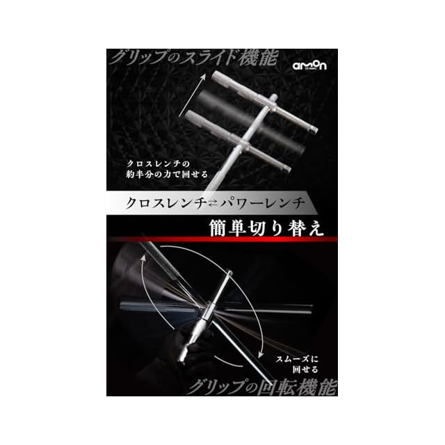 【タイヤ交換作業が素早くラクにできる】ハンドル、グリップ位置をパワーレンチ、クロスレンチへ変えられる。