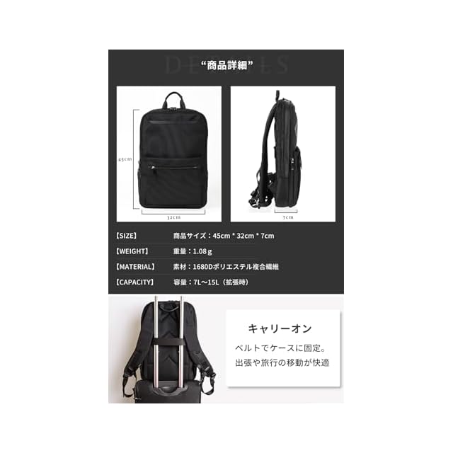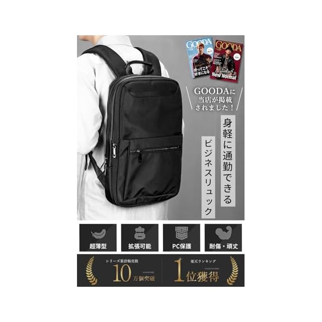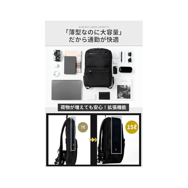 [zepirion] 2倍に拡張できる薄型 ビジネスリュック メンズ 撥水 バッグ 15.6インチ PC A4収納可 薄型 バックパック 通勤バッグ ExPack (ネイビー) | triggerbiz