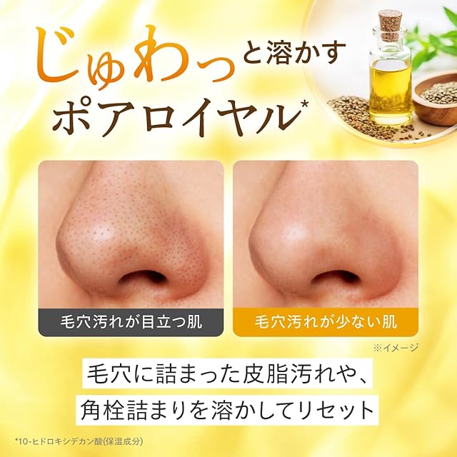 毛穴ケア機能をアップグレードしてリニューアルしました。毛穴汚れをオフする天然由来成分「ポアロイヤル」だけでなく、今回のリニューアルでさらに油溶性ビタミンC誘導体をプラス!毛穴目立ちへの原因へとアプローチし、キメの整った肌へと導きます。