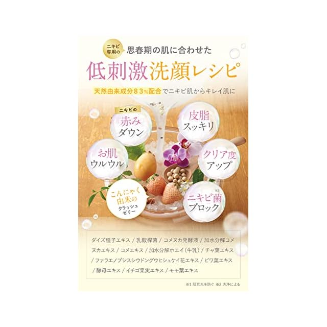 【クラッシュゼリー状の洗顔料】肌の上でクラッシュすることで、お肌に負担をかけずに古い角質や汚れ、ニキビ菌だけを吸着します。