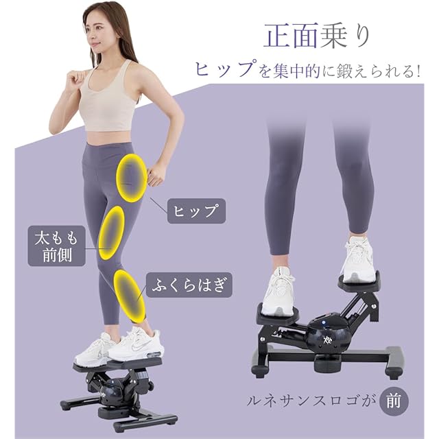 【乗る向きで変わる鍛える部位】 ツイストステッパーだから正面乗りでヒップを集中的に鍛えられ、後面乗りで太もも内側を集中的に鍛えられます。