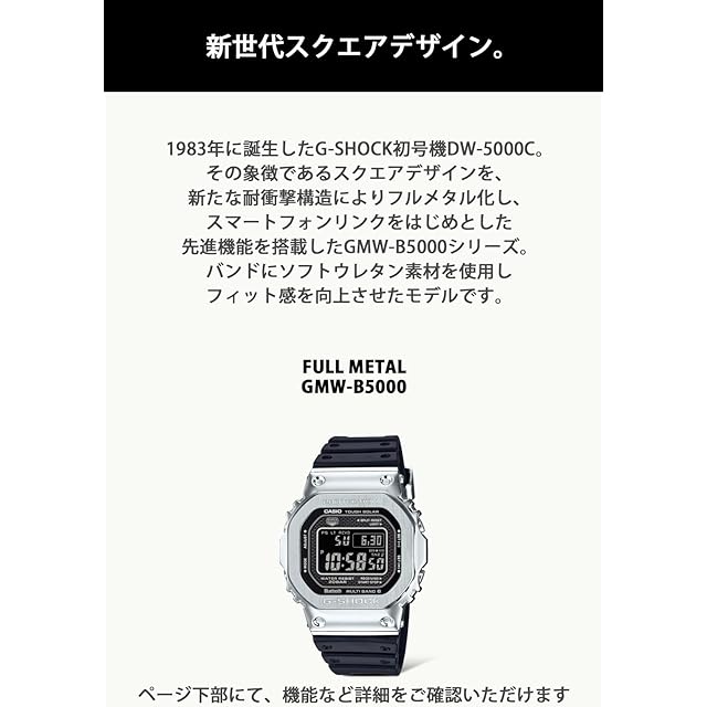 1983年に誕生したG-SHOCK初号機、“DW-5000C"のデザインはそのままにフルメタル化し、スマートフォンリンクをはじめとした先進機能を搭載したGMW-B5000シリーズのご紹介です。