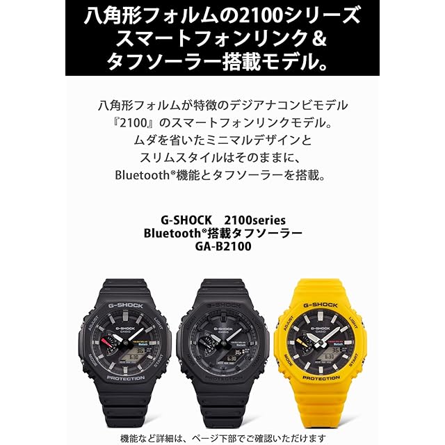 時計にタフネスという新たな概念を築き上げた落としても壊れない時計「G-SHOCK」。初 代G-SHOCKのデザインコンセプトを 受 け 継 いだGA-2100の八角形フォルムはそのままに、スマートフォンリンクとタフソーラーを搭載しました。