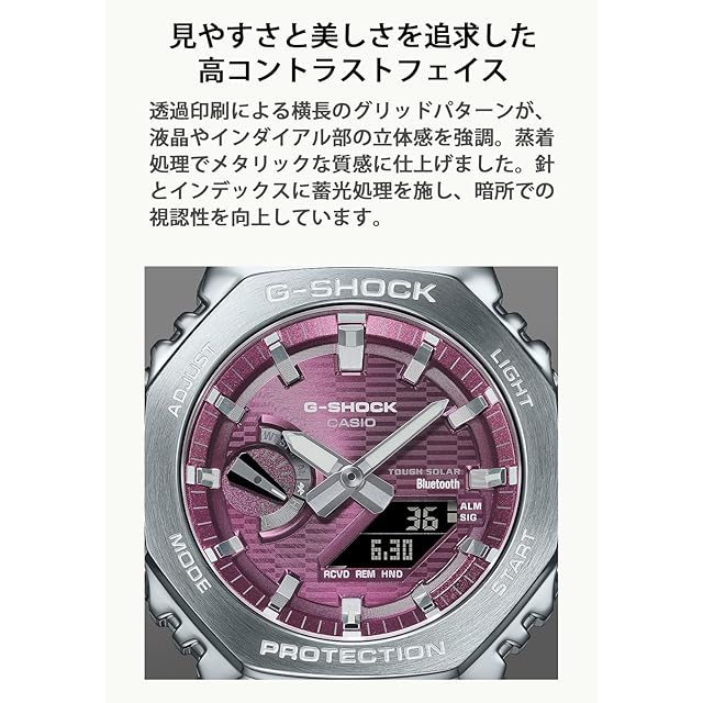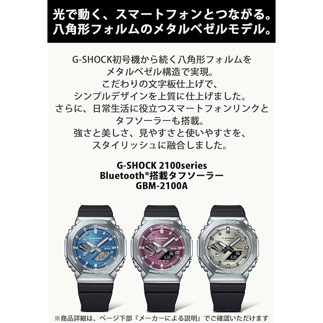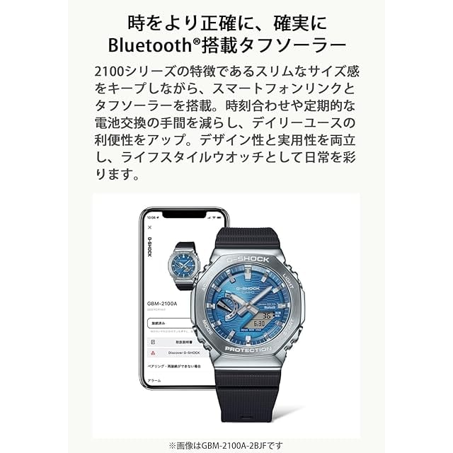 1983年の発売以来、飽くなき強さを求めて進化を続けるタフネスウオッチG-SHOCKから、2100シリーズの特徴であるスリムなサイズ感をキープしながら、スマートフォンリンクとタフソーラーを搭載したメタルベゼルのモデルのご紹介です。