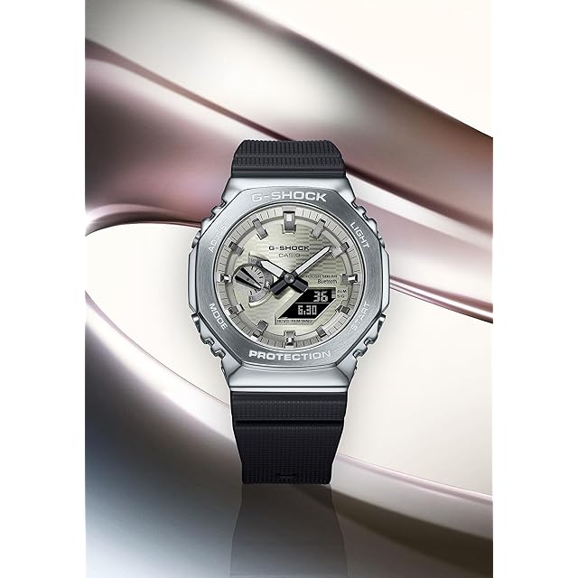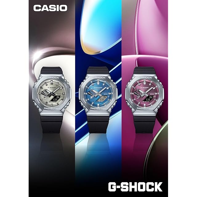 1983年の発売以来、飽くなき強さを求めて進化を続けるタフネスウオッチG-SHOCKから、2100シリーズの特徴であるスリムなサイズ感をキープしながら、スマートフォンリンクとタフソーラーを搭載したメタルベゼルのモデルのご紹介です。