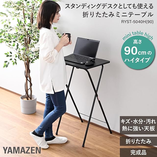 山善(YAMAZEN) テーブル ミニ 折りたたみ式 サイドテーブル ハイタイプ 机 メラミン天板(傷・汚れ・水分・熱に強い) 幅50×奥行52×高さ90cm 完成品 ブラック/ブラック RYST-5040H(90)(BK/BK4)