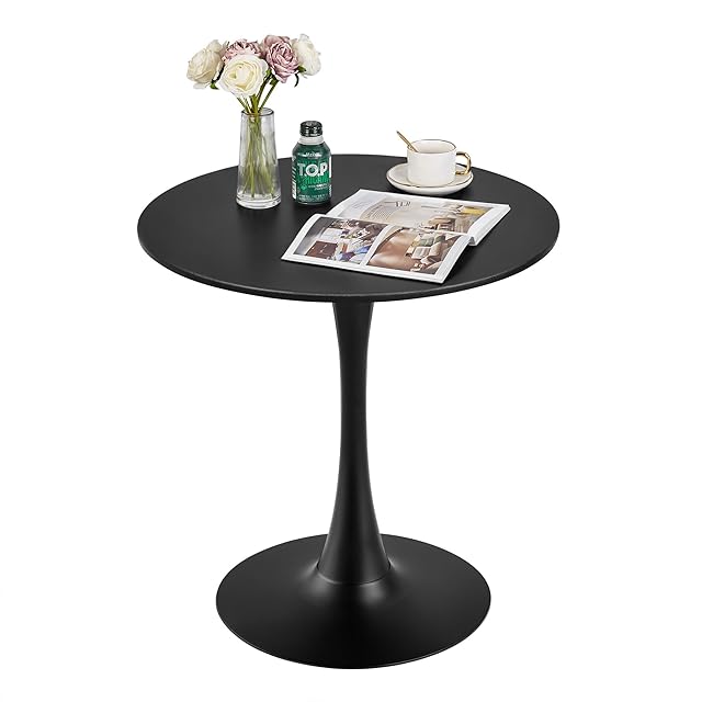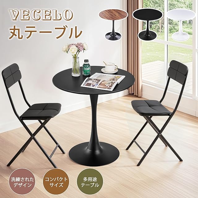 VECELO 丸テーブル ダイニングテーブル 直径60×高さ73cm カフェテーブル 食卓 円形 組み立て簡単 ブラック