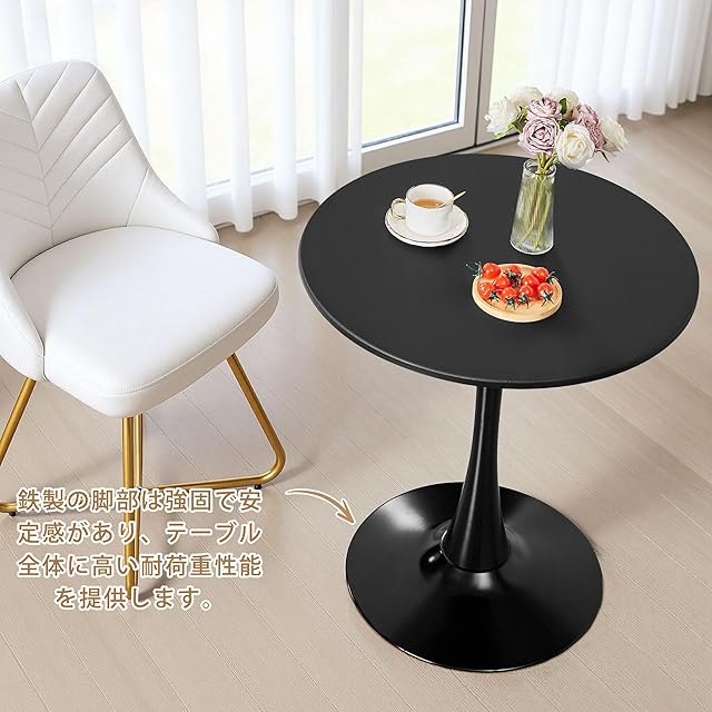 【シンプルでエレガントなデザイン】シンプルでありながらエレガントなテーブルで、美しい円形の天板は、モダンで洗練された雰囲気を醸し出し、どんなインテリアにも簡単にマッチします。清潔感のあるカラーは、空間を明るくし、他の家具や小物との調和も抜群です。オフィスやカフェ、家庭用としても使いやすく、どんなスタイルの部屋にも自然に溶け込みます。