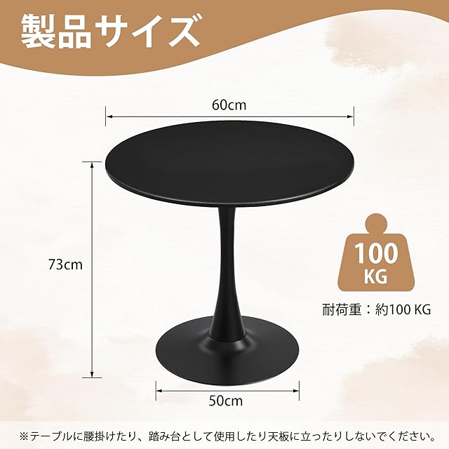 【商品仕様】サイズ:S-直径60x高さ73cm、M-直径70x高さ73cm、L-直径80x高さ73cm。素材:MDF天板+鉄。重量:S-7KG、M-9KG、L-10KG。耐荷重:約100 KG。※カメラ光線の加減で実物と色が多少異なる場合がございますので、予めご了承ください。※テーブルに腰掛けたり、踏み台として使用したり天板に立ったりしないでください。※お客様が受け取った製品は問題がありましたら、サービスサポートご気軽に連絡してください。返品&交換&返金に対応していて、安心してご購入いただけます。