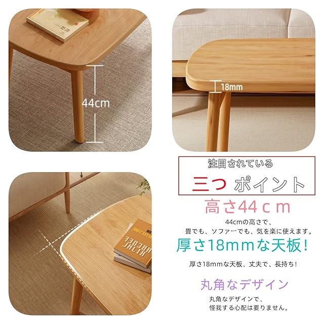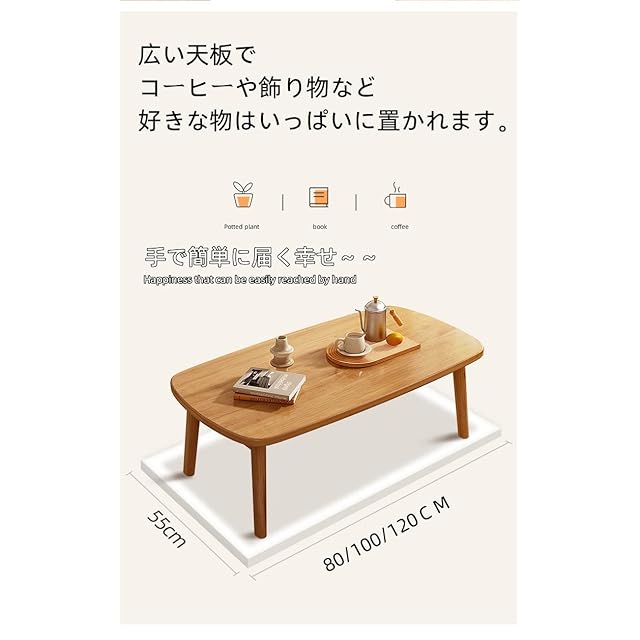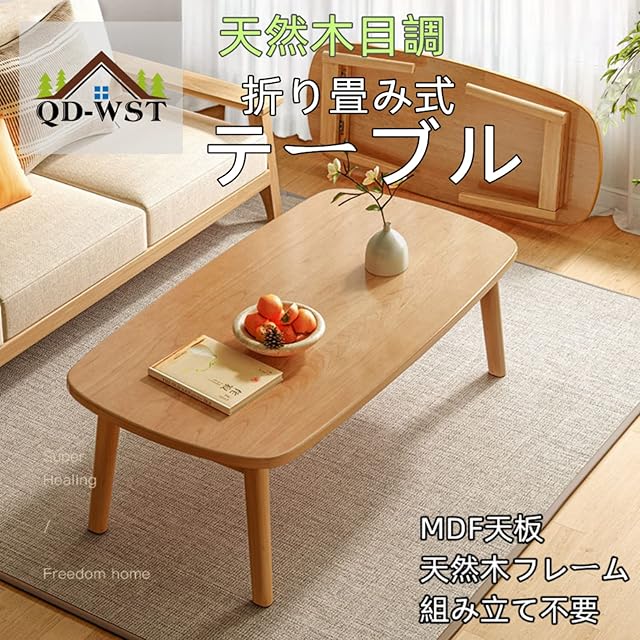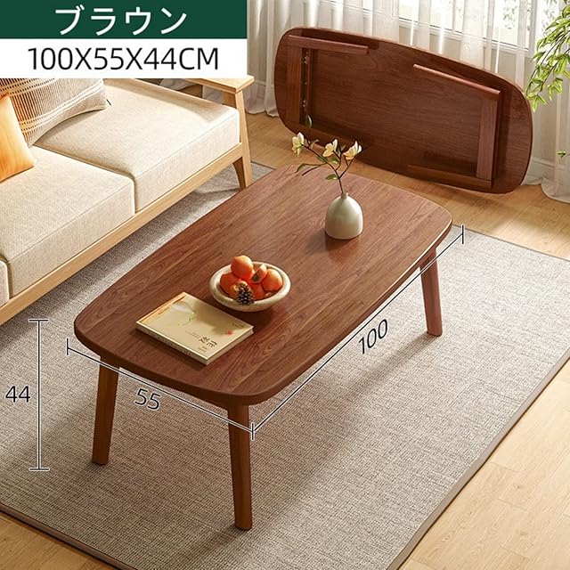 QD-WST ローテーブル センターテーブル 折り畳みテーブル 折れ脚センターテーブル 折りたたみ おしゃれ 収納便利 天然木フレーム 丸角… (ブラウン, 100x55x44CM)