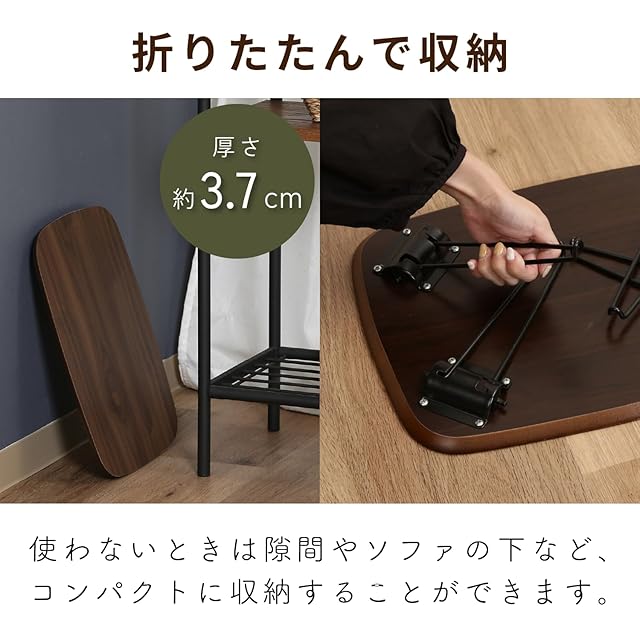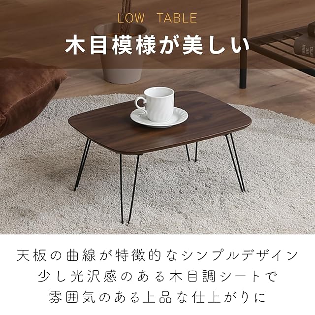 少し丸みのあるスクエア型がおしゃれな折りたたみローテーブル