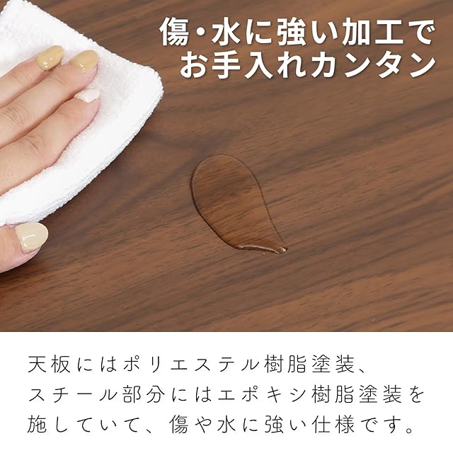素材・材質:天板/プリント紙化粧パーティクルボード、天板側面/塩化ビニル樹脂、脚部/スチール[エポキシ樹脂塗装]
