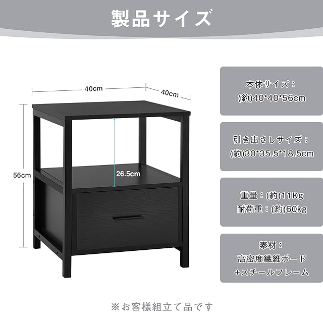 color:ブラック size:1点 style:モダン-1個引き出し-40*40*56cm: