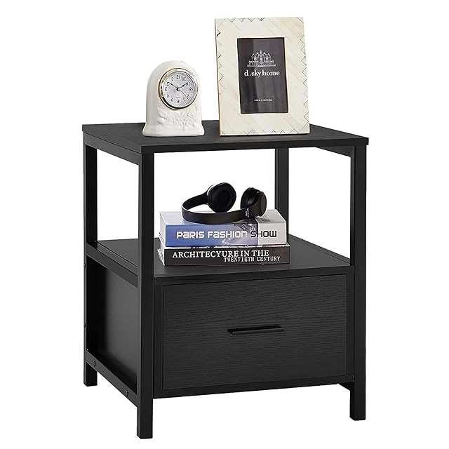 VECELO サイドテーブル ナイトテーブル ベッドサイドテーブル ブラック 幅40×奥行き40×高さ56cm おしゃれ 引き出し付き 収納付き ベッド横 スクエア シンプル 北欧風 【日本正規輸入品】