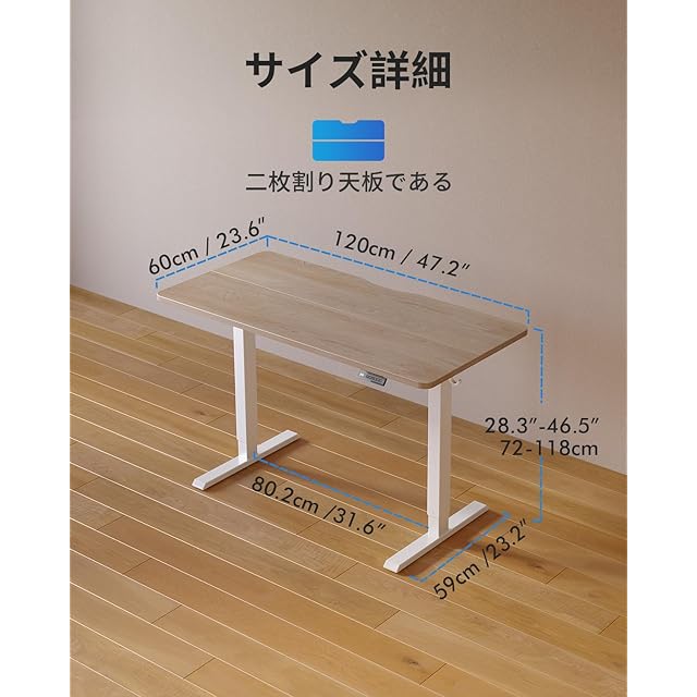【FEZIBO昇降デスク本体サイズ】*天板サイズ:幅120cm×奥行60cm*昇降範囲:72cm〜118cm(天板とアジャスターを除く)*モニターアーム取り付け可能*お客様組み立て品です。シンプルながら機能性を備えたスタンドデスクとして、在宅ワークやゲーミング環境にも対応します。