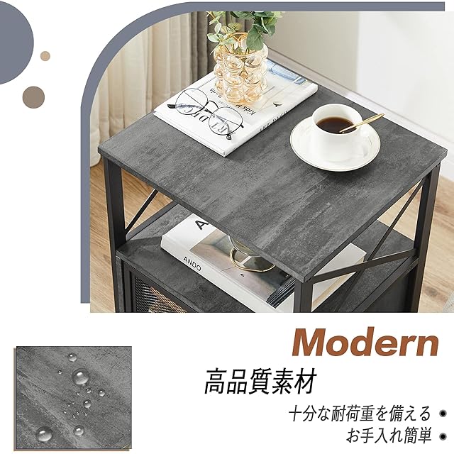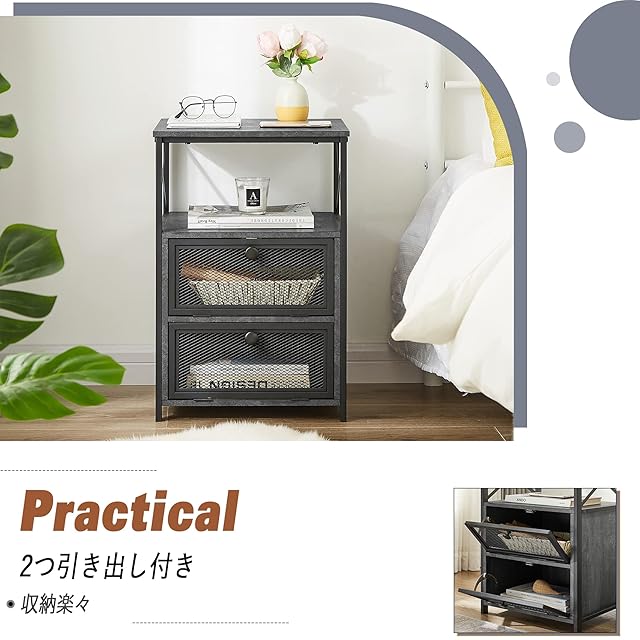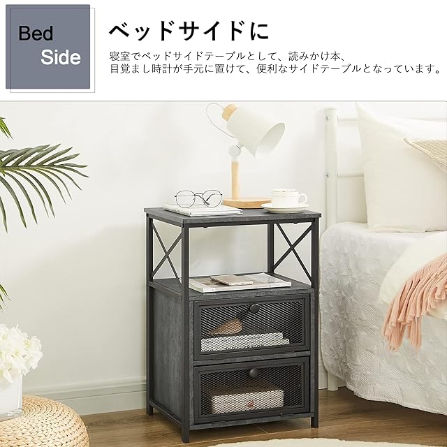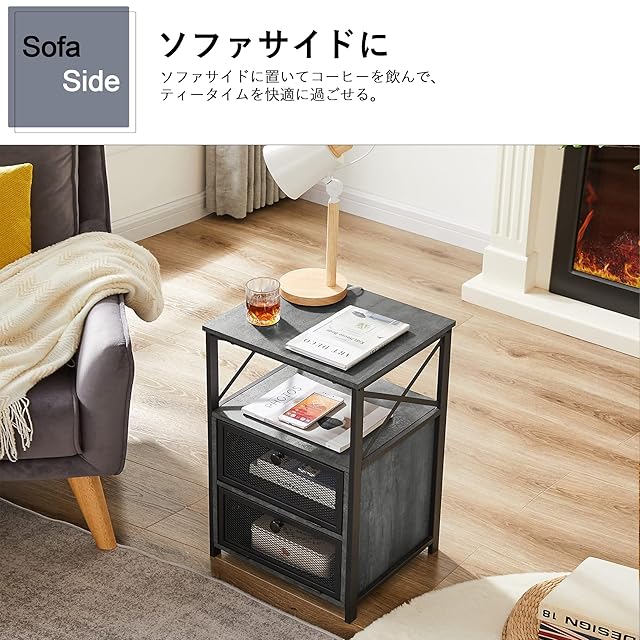 【収納楽々】2つ収納引き出し付きで、漫画や雑誌、メガネ、リモコン、タブレット、などの小物を入れられる十分なスペースがあります。2段オープン棚は、コーヒーカップをおいて、スタンドライトを置いて読書にも最適です。