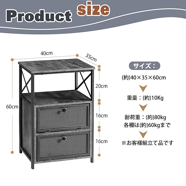 color:チャコールグレー size:1点 style:シンプル-2個引き出し-40*35*60cm: