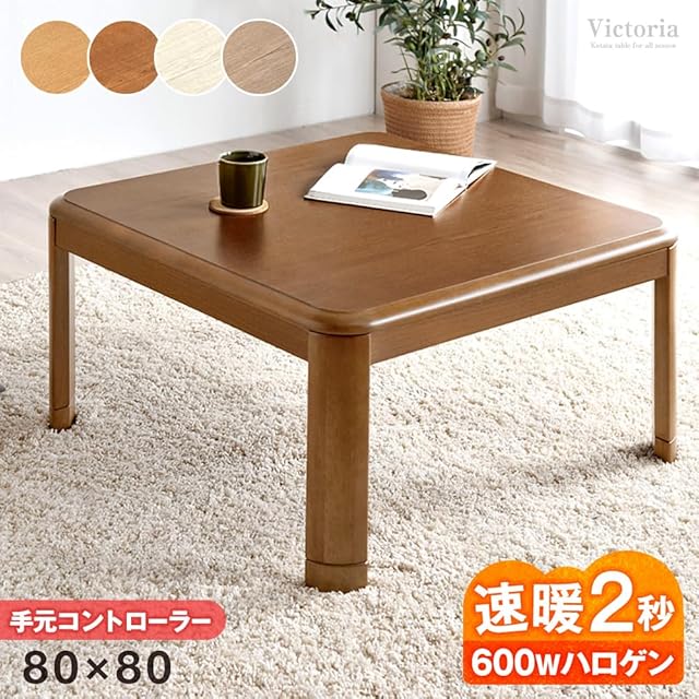 タンスのゲン 【速暖2秒!600Wハロゲンヒーター】 手元コントローラー 家具調 こたつ テーブル 正方形 80×80cm 木目 UV塗装 継ぎ脚 ナチュラル 68140093(94030)