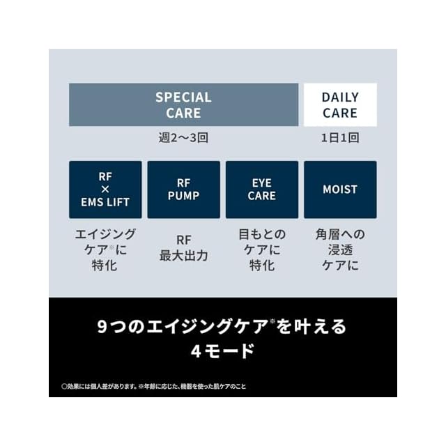 エイジングケア研究から生まれた3MHzのパナソニック史上最高出力RF、デュアルダイナミックEMS、さらにLEDとイオンを加えた4つの機能を搭載