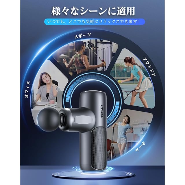 【Type-C急速充電&持ち運び便利】僅か2時間でフル充電!4000mAhバッテリーが内蔵され、最大8時間連続使用可能(電池の残量や充電環境、使用環境によって大きく前後します)。 Kycle筋膜リリースガンは一回のフル充電で、極上のボディーケアが何回も楽める。パワフルでありながら394gの小型設計で収納袋付きで持ち運びにも便利です。宅でのご使用はもちろん、職場/ジム/公園などにも簡単に持ち運び可能です。
