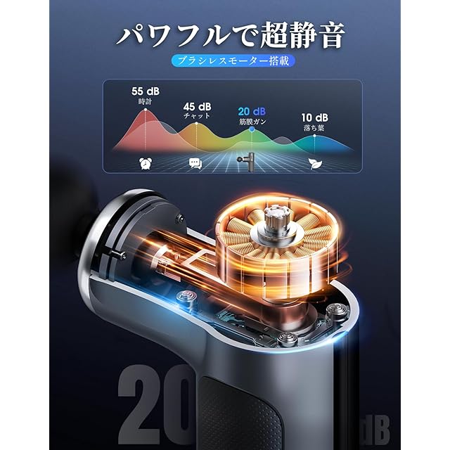【パワフル&低騒音】Kycle筋膜リリースガンはノイズを低く抑えるため、先端ブラシレスモーターを採用し、 最大3200rpm/minでの作動音も45dB(日常会話の程度)以下に抑えられて非常に低騒音で、時間や場所に気にする必要はなく、周りの迷惑になる心配もなし、ジムやオフィス、いつでもどこでも楽しむことができます。