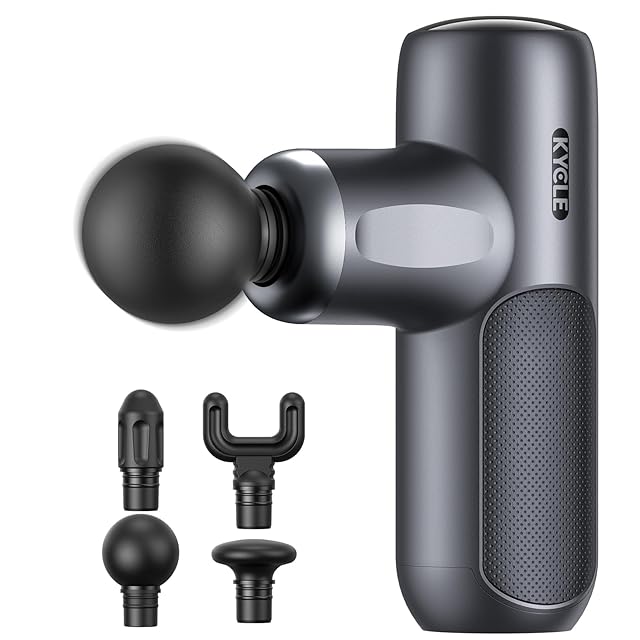 KYCLE 筋膜リリースガン ハンディガン MINI 5段階振動強力振動 8時間連続使用 超軽量 AI自動モード Type-C急速充電 ミニ 筋膜ガン 静音 携帯便利 4種類アタッチメント リリースガン 誕生日 クリスマス 新年お祝い プレゼント最適 収納袋&日本語取扱説明書付き