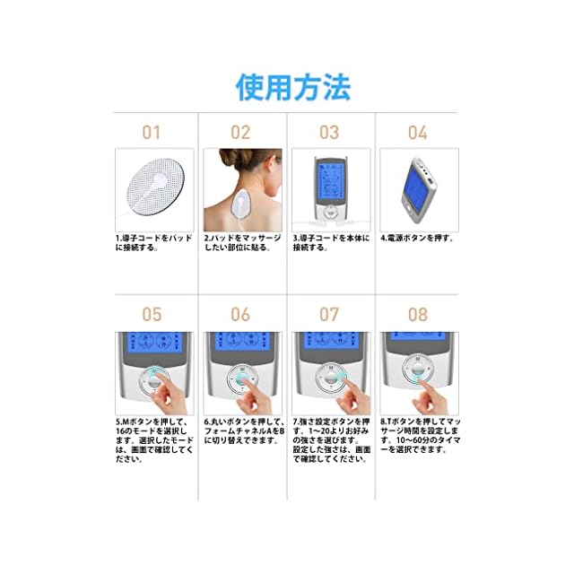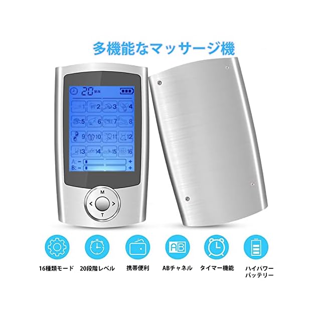 【優れた機能性】16種類のモード、20段階の強度があり、最長60分間の稼働時間を選択できます。A/B 独立したデュアルチャンネル、各チャンネルの異なる強度設定で操作できます。ご体調に合わせて低~高の20段階レベルから選択できます。初めてご利用になる場合はレベル1からお試しください。