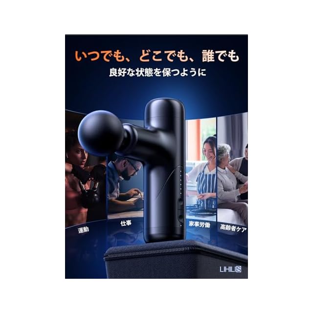 【高性能Alチップ搭載・安全性耐久性が満点・プレゼントに最適】Lihilisのmini筋膜リリースガンは、安全性をつかさどる高性能AIチップを搭載。電圧制御、電圧ショート保護、高温保護、過過電流保護など10項目に及ぶ保護機能を備え、使用感を快適にしました。老若男女に適しており、贈り物に最適です!日常の使用に非常に適しており、忙しい生活の中でも良好な状態を保ちます!長年、新技術・新製品を創造し続けています。そのために、研究開発に力を注ぎ続けています。常に業界トップクラスの品質を守り続けています。本製品は2年間の期間が付いています。万が一、商品に不具合が生じた場合には、弊社までご連絡いただければ、迅速かつ日本語で対応いたしますので、安心してご利用ください。パッケージ内容:軽量ミニ筋膜リリースガン×1、充電用USBコード×1、アタッチメント×4、収納用ケース×1、日本語取扱説明書×1