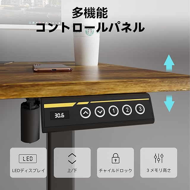【人間工学に基づいた高さ調整】スタンディングデスクの高さは72CMから120CMまでスムーズに調整でき、座ったり立ったりするのに最適な高さを選択できます。 3 + 2 個のプログラム可能なプリセット ボタンを使用すると、一日を通して好みの高さ設定に簡単に切り替えることができます。