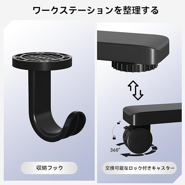 【取り付け簡単】 電動オフィス家具には、組み立てが簡単な詳細な説明書とマークされたハードウェアが付属しています。 2 つのフックにヘッドフォンやバッグを収納でき、作業スペースを整理整頓できます。