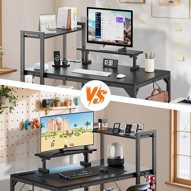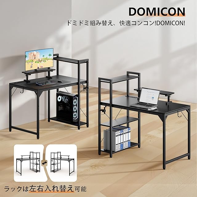 DOMICON ゲーミングデスク コンセント付き 幅107CM 棚付き 収納 モニター台付き パソコンデスク pcデスク オフィスデスク 学習机 作業机 computer desk 电竞桌 おしゃれ 組立簡単 黒