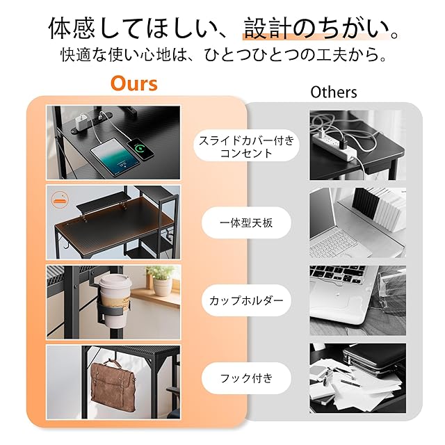 【左右設置可能・組立超簡単】パーツの数を減らし、さらに詳しい動画と説明書が付いているため、一人でも簡単に組み立てられます。デスクの棚は左右どちらにも設置可能で、インテリアに合わせて自由に配置できます。