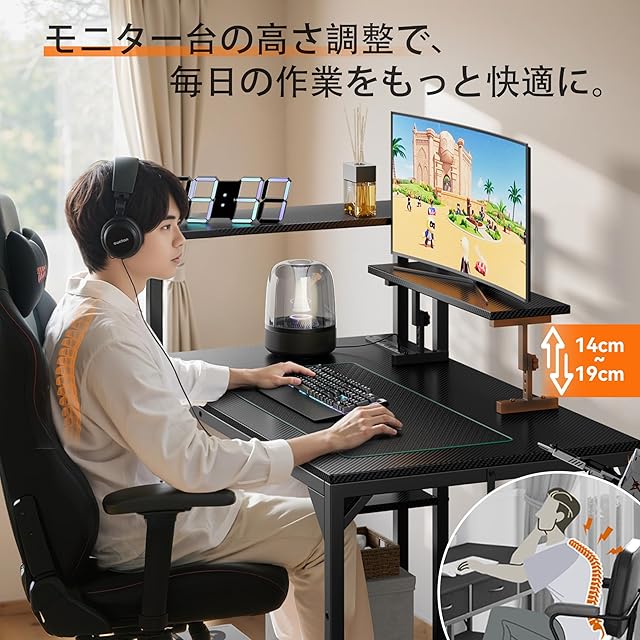 【4段階調整対応のモニター台】ダイヤルを緩めるだけでモニター台の高さを調整でき、家族の異なる身長にも対応可能です。ゲームデスク、ワークデスク、学習机など、さまざまな用途で活躍します。