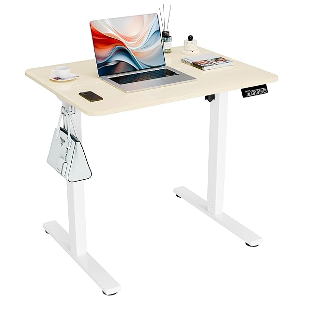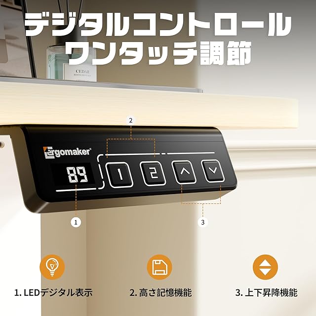ERGOMAKER 電動式昇降デスク スタンディングデスク(幅80×奥行60cm)上下昇降デスク 電動昇降デスク 高さ調節デスク 電動昇降式 机 掛けフック付く 静音モーター採用 ゲーミングデスク 昇降式 昇降テーブル パソコンデスク 調整記憶機能メモリー付く 天板付く(ホワイト)+天板(木目調)