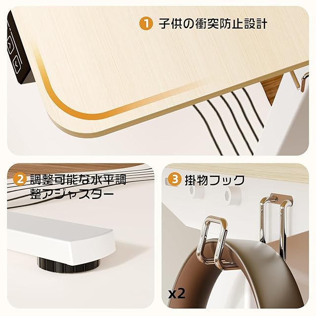 「昇降機能」 この電動昇降デスクは、先進の昇降システムを搭載しており、簡単なボタン操作でデスクの高さを調節することができます。スタンディングデスクとして使用したり、昇降式のゲーミングデスクとして利用したりすることができます。ワンタッチで切り替えられるので、快適で自由な作業体験を提供します。上下昇降範囲71-118CM。