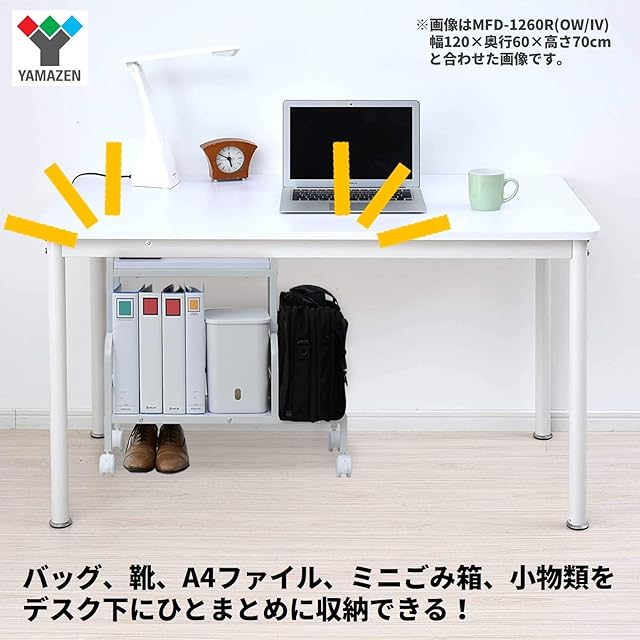 山善(YAMAZEN) デスク下 収納 ワゴン キャスター付き 靴・A4ファイル・バッグをまとめて収納 棚板可動 フック付き 幅70×奥行29.5×高さ60cm ホワイト/アイボリー MUDB-70(WH/IV)
