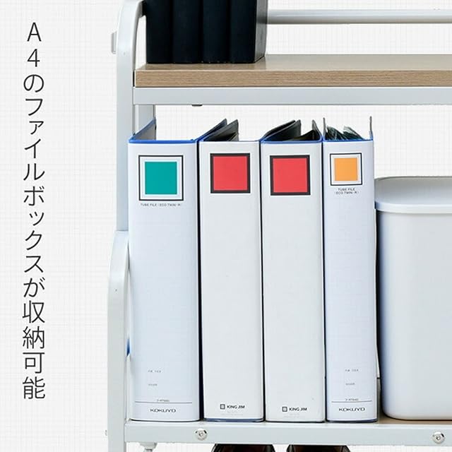 【A4ファイルやゴミ箱置き場に】下棚(大)はA4ファイル対応で、デスクで作業しながら書類をさっと取り出すことができます。また、小型のゴミ箱を置くのにも最適です。