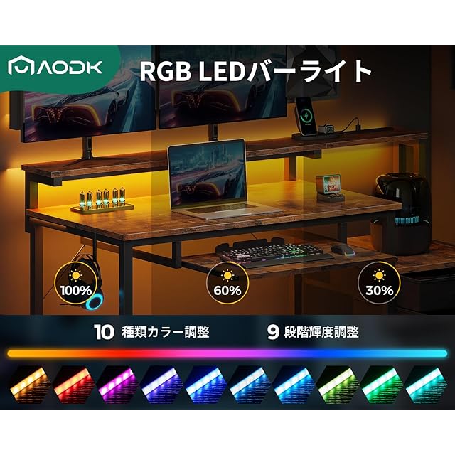 【RGBバーライト付き、お部屋の雰囲気が変わる】ゲーム机には10段階調色・9段階調光のLEDバーライトを搭載しており、気分やシーンに合わせてカラーを切り替えることができる。より頑丈で長持ちやすい。臨場感にあふれるゲーム雰囲気だけではなく、温かみのある学習・仕事環境も作り出せる。