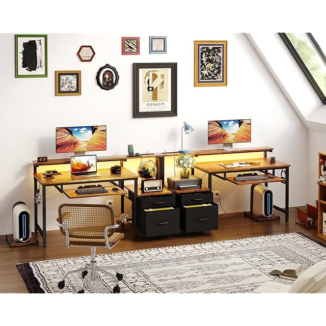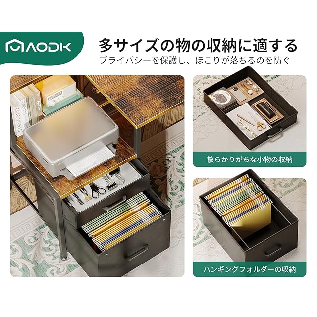 【革新の収納設計、多サイズの物の収納に適する】置台と布製の引き出し2杯からなるキャビネットのような収納空間+超長い机上台+可動的なCPUスタンド+フック、限られた空間で収納効率が大幅にUP。MDFボードを内蔵した引き出しは重い物を入れても変形しにくい。プライバシーを保護し、ほこりが落ちるのを防ぐ。デスク周りをちゃんと整頓いただけ、お部屋がスッキリ。インテリアに基づいて左右どちらでも設置OK。