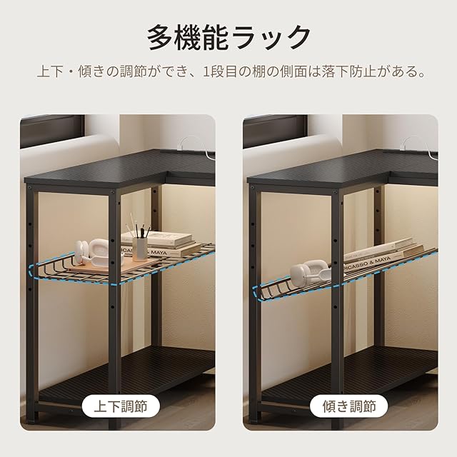 【左右入れ替え可能な収納スペース】収納棚とモニター台は、使用習慣や部屋のレイアウトに合わせて左右に配置でき、寝室、寮、小さな部屋のコーナーに最適です!メッシュパネルは、必要に応じて 3 つの異なる高さと傾斜角度に調整できます。落下防止設計も備えており、アイテムの安全性を確保します。 パソコンデスクにはフックが付いており、バッグ、イヤホンなどの収納が便利になり、天板もすっきりします。