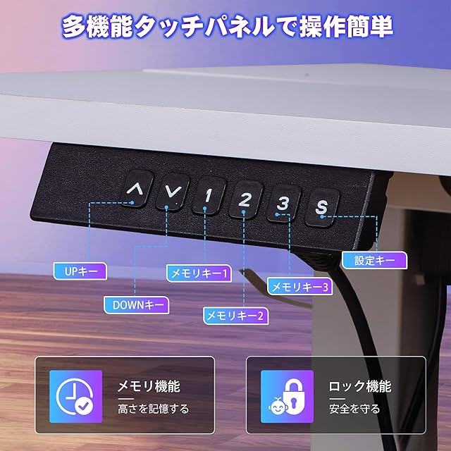 【便利な3段階メモリー機能】よく使う高さを3つまで登録できるメモリー機能を搭載しています。ワンタッチで自分好みの高さに調整できるため、毎回設定する手間が省け、作業効率がアップします。家族や複数人で共有して使いたい方にも最適です。