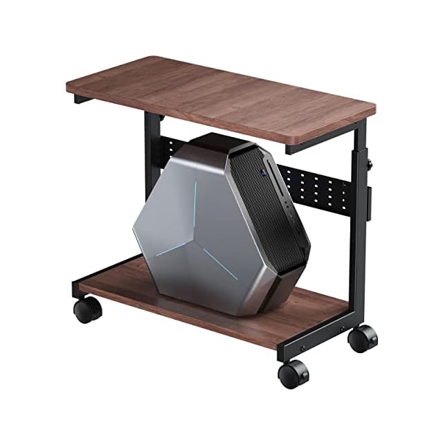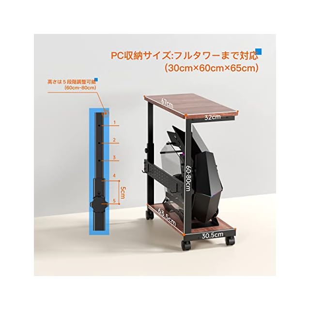U-POWER 昇降式L字デスク PCラック パソコンラック pcワゴン 高さ調整可能(幅32✕奥行67x高さ60~80cm) 木目調 X-1-WG