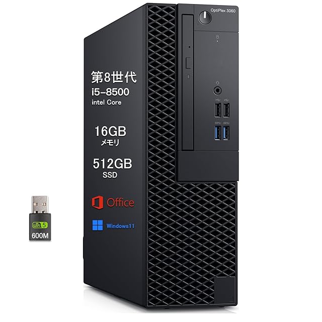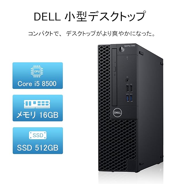 デル デスクトップパソコン OptiPlex 3060SFF、第8世代Core i5-8500 デスクトップPC メモリ16GB SSD512GB、中古 パソコン デスクトップ Win11 Pro Office 搭載、高性能Desktop pc 4K対応、Displayport、HDMI、DVD内蔵 (整備済み品)