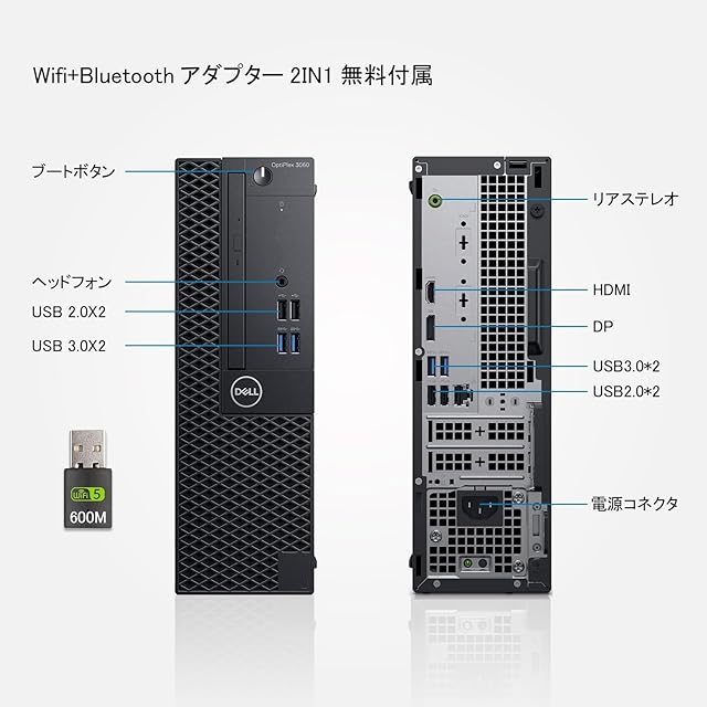 無線LAN(WIFI)、DVD内蔵、Bluetooth、HDMI、DisplayPort、USB3.0*4およびUSB2.0*4を搭載しています。無料の超高速(600M)WiFi + Bluetoothアダプター